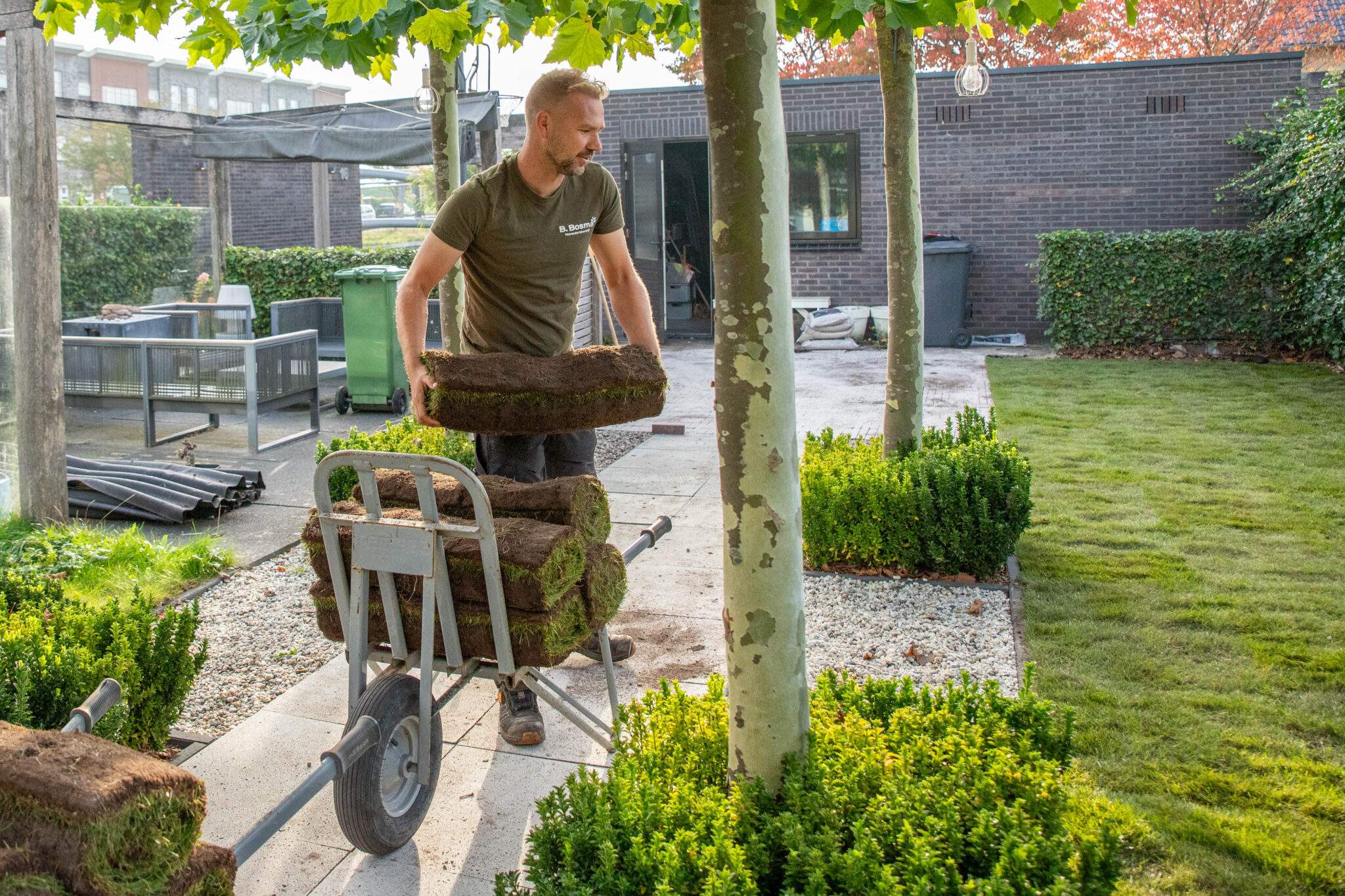 De volledige tuin, van bestrating, plantenbakken, beplanting tot erfafscheiding, perfect en snel gerealiseerd! En zeer vakbekwame en aardige werknemers.